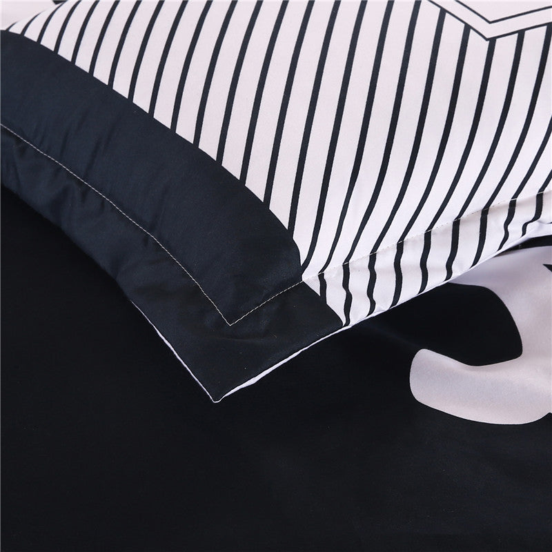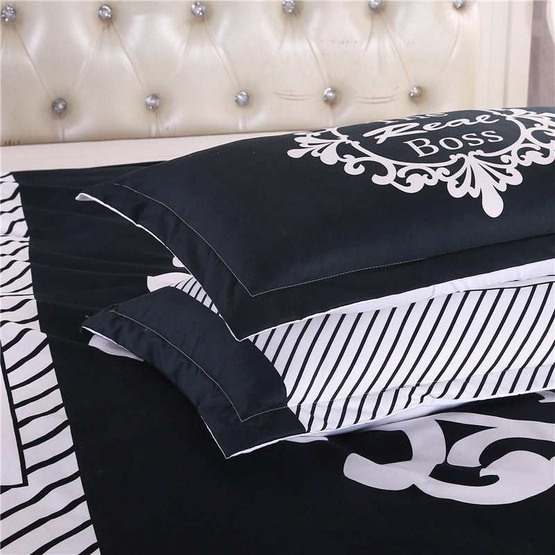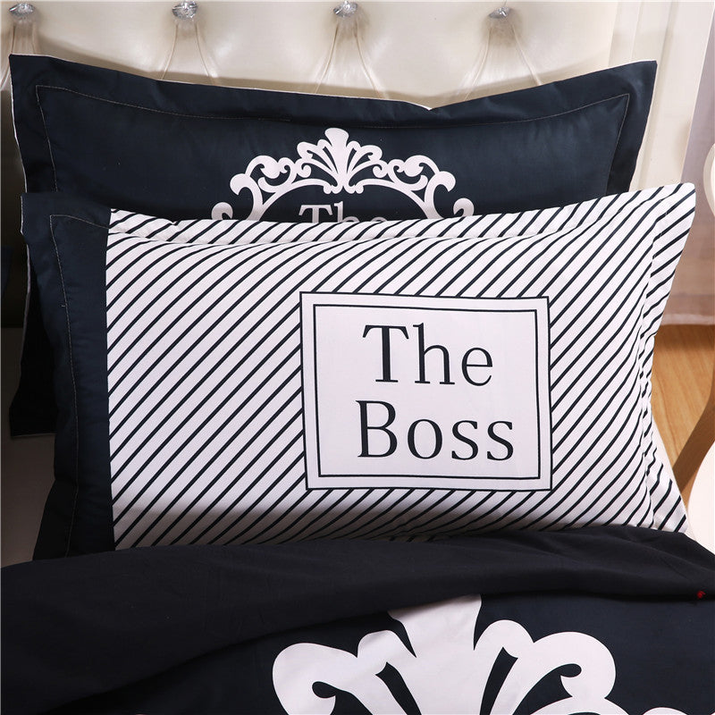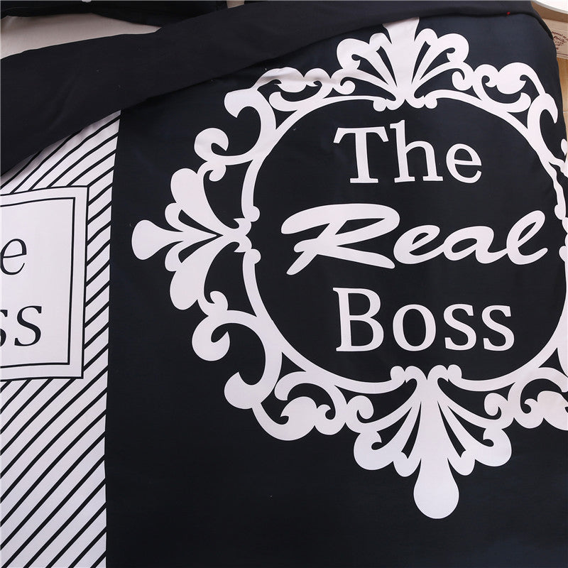 iDouillet 3D Initial "The Real BOSS" Bedding Set for Couple Duvet Cover Sheet Pillowcase Queen King Size Black White Bedlinen