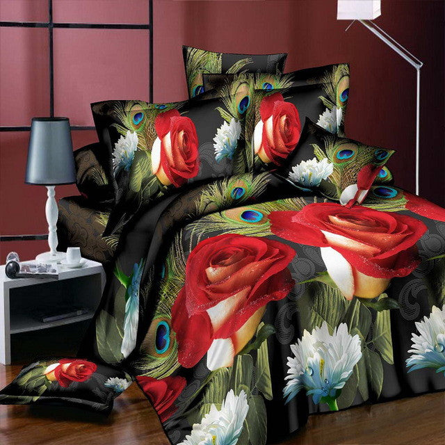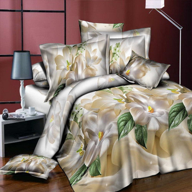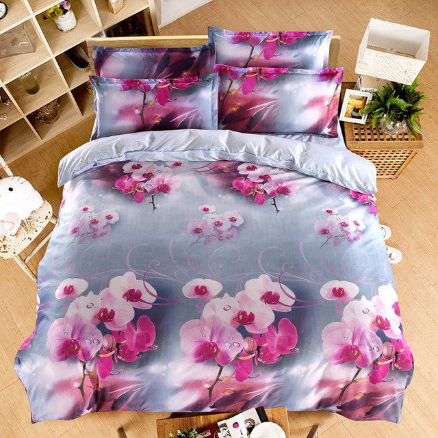 Plant Blue flower 3D Polyester Bedding Set of Duvet Cover set Bed Sheet Pillowcase Bed Clothes Queen size