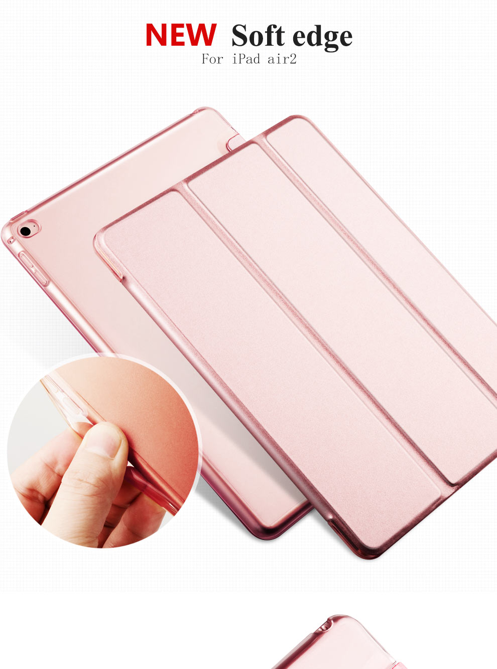 Luxury pu leather for ipad air2 kenke new smart cover Soft TPU Bumper Edge for iPad air 2 case tablet Sleep Wake up case