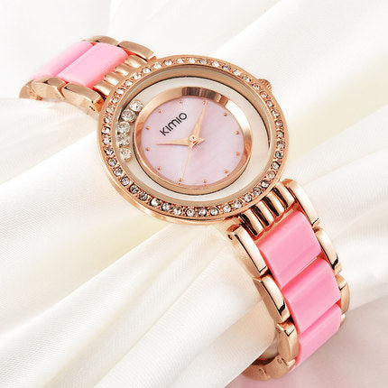 Kimio ultra slim Top Brand Woman watches Fashion Ladies Crystal Clock Black Ceramics Gold Luxury Women Rhinestone Diamond Watch