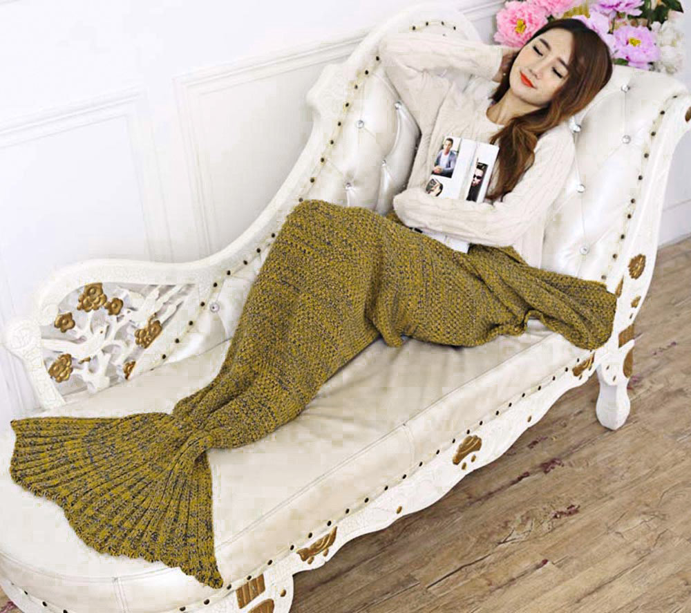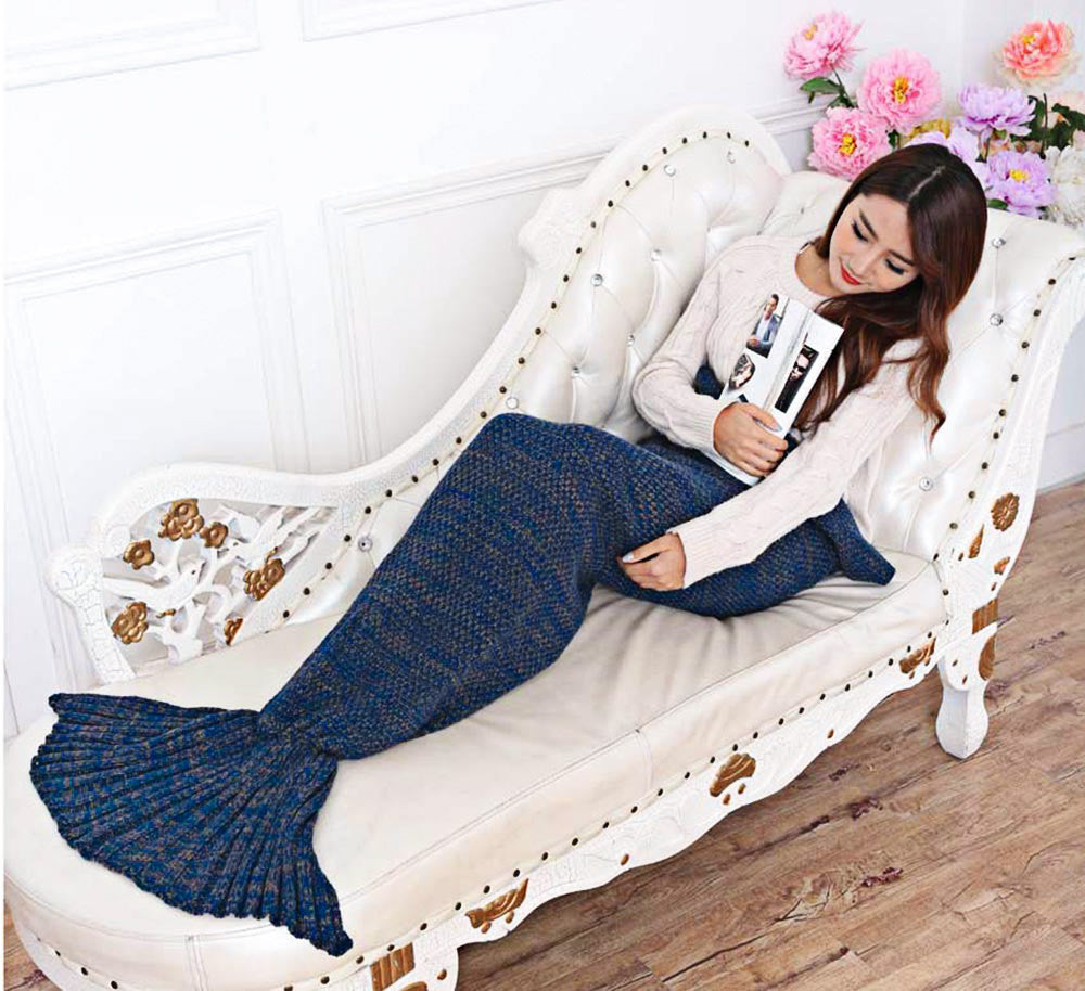 195x95CM Yarn Knitted Mermaid Tail Blanket Soft Sleeping Bed Handmade Crochet Anti-Pilling Portable Blanket Air Conditioning