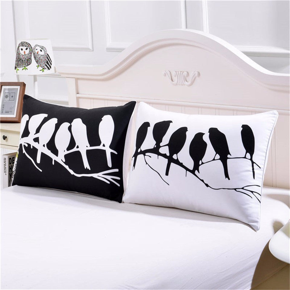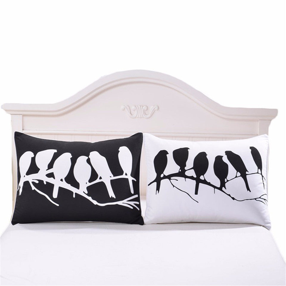 BeddingOutlet Birds Pillowcase Cover Black and White Bedclothes Plain Printed Decorative Pillow Case Family Gift a Pair 2 Sizes