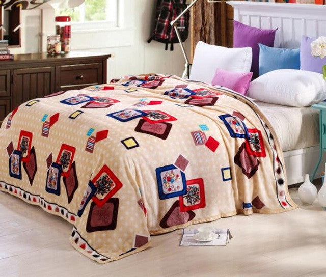 cute plush Package edge technology Pattern High Density Super Soft Flannel Blanket to on for the sofa bed textile 4 sizes