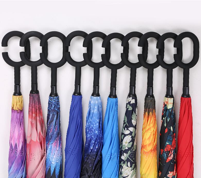 Drop Shipping Windproof Reverse Folding Double Layer Inverted Chuva Umbrella Self Stand Rain Protection C-Hook Hands For Car