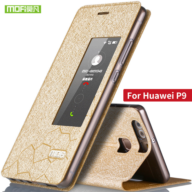 Huawei P9 case cover silicone back Huawei P9 Case original Mofi Flip Leather wallet aluminium cover huaweip9 case foundas 5.2"