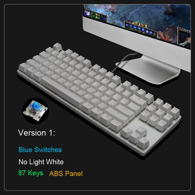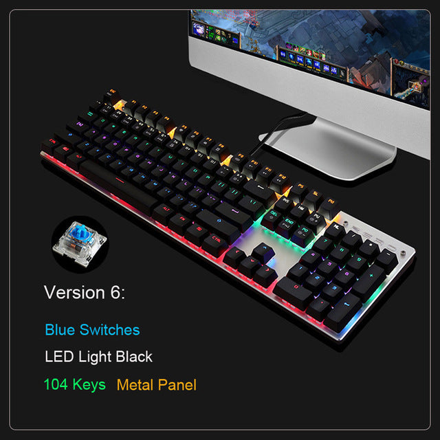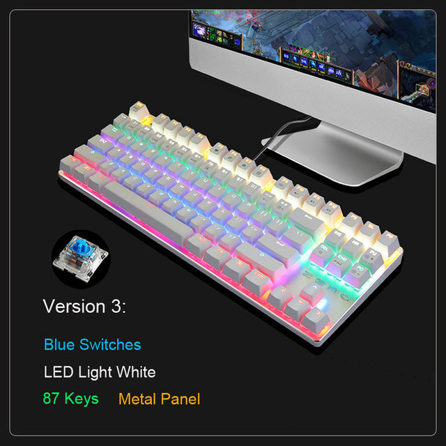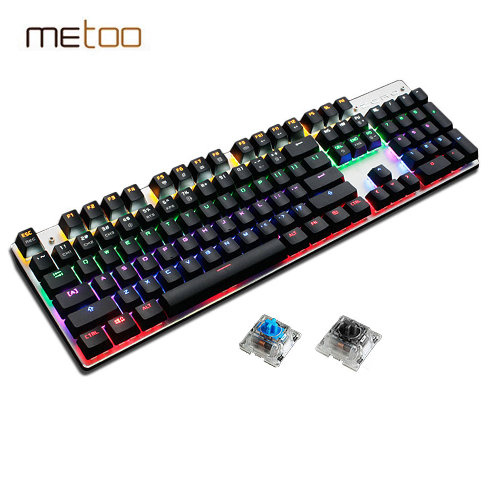 Metoo Mechanical Keyboard 87/104 Anti-ghosting Luminous Blue Black Switch LED Backlit wired Gaming Keyboard Russian stickers