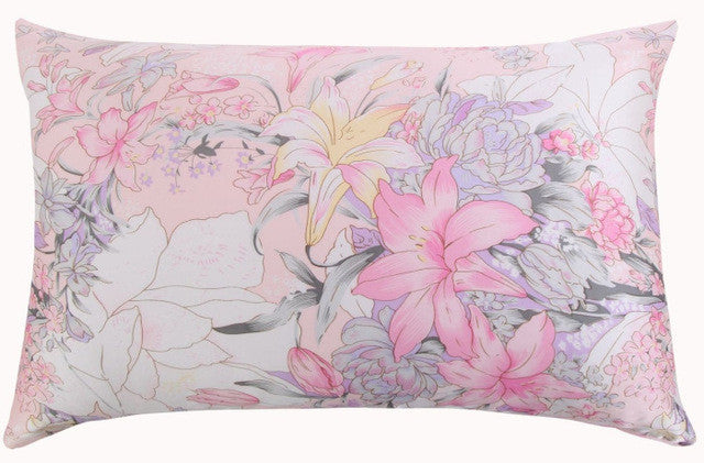 New Free shipping 100% nature mulberry floral silk pillowcase zipper pillowcases pillow case for healthy standard queen king