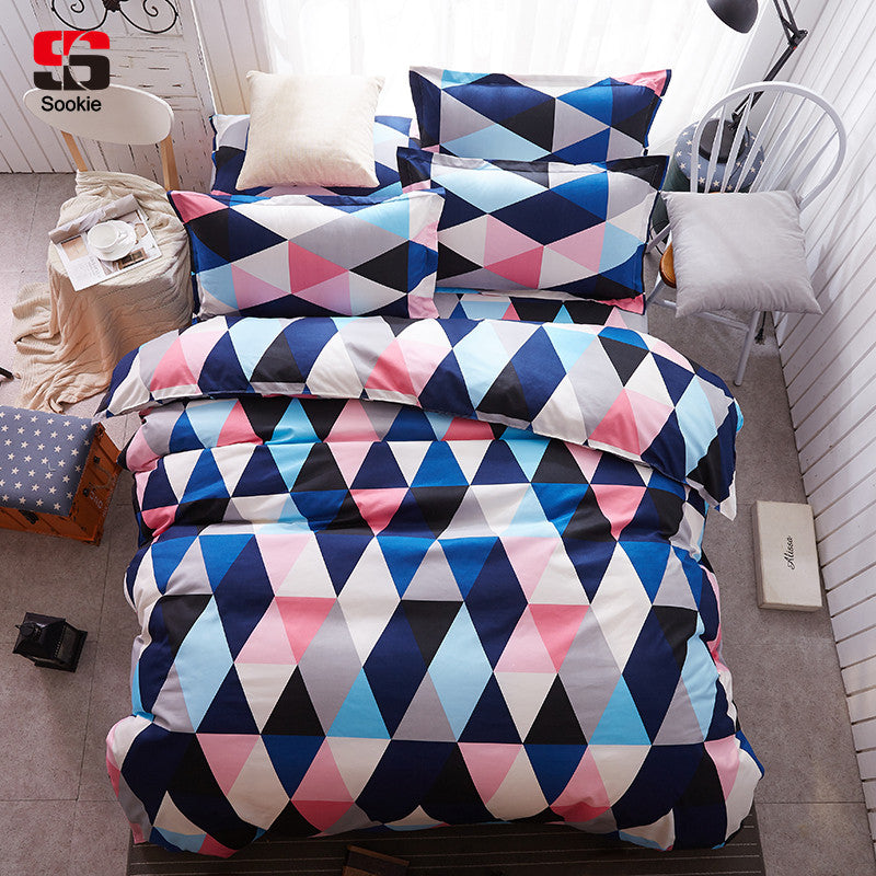 Sookie Home Textile 3pcs King Size Colorful Bedding Sets Pretty Geometric Plaid 4pcs Duvet Cover Sets Pillowcases Pillow Covers